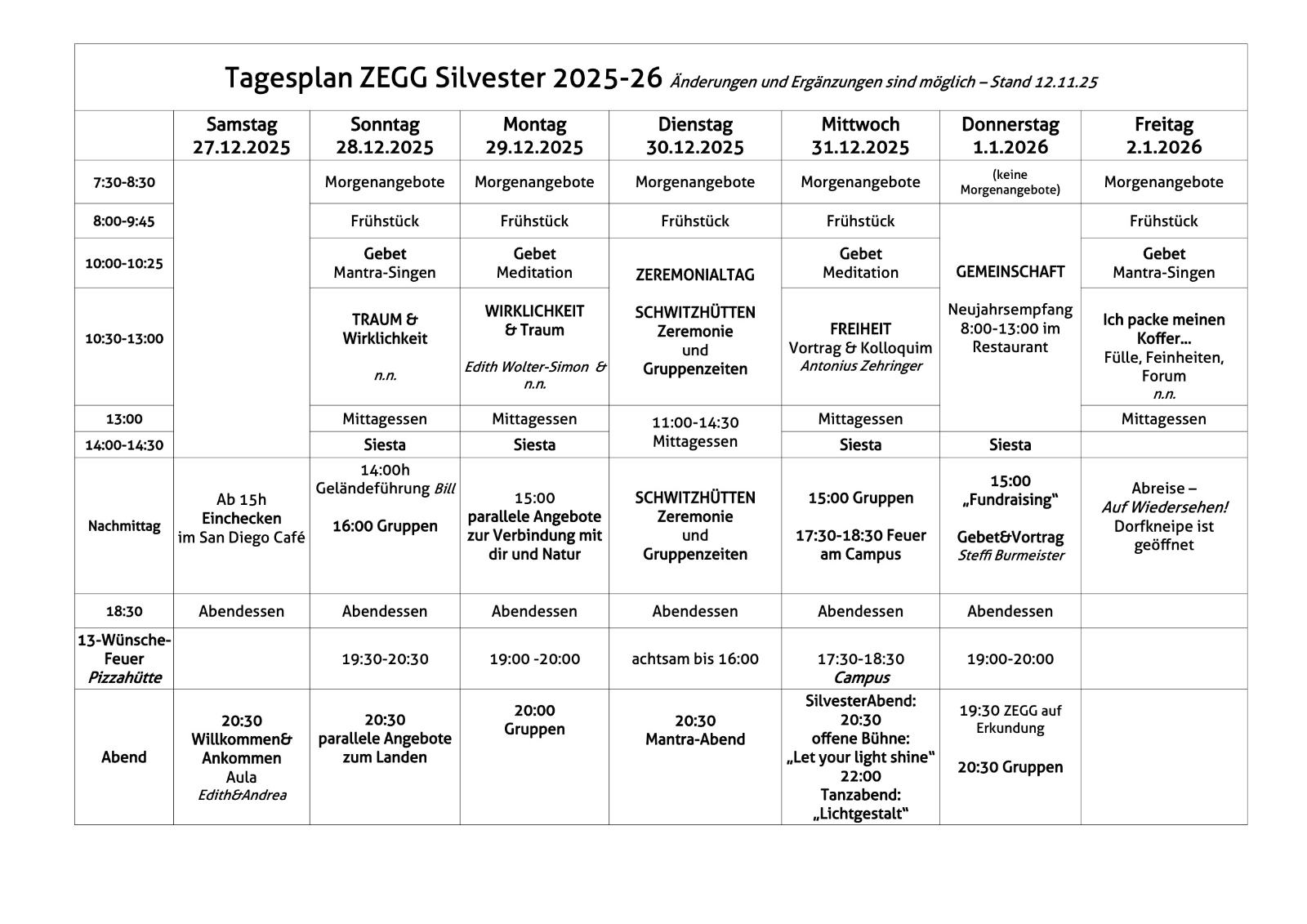 begleiten euch durch die Silvestertage und heißen euch von ganzem Herzen hier im ZEGG willkommen.
